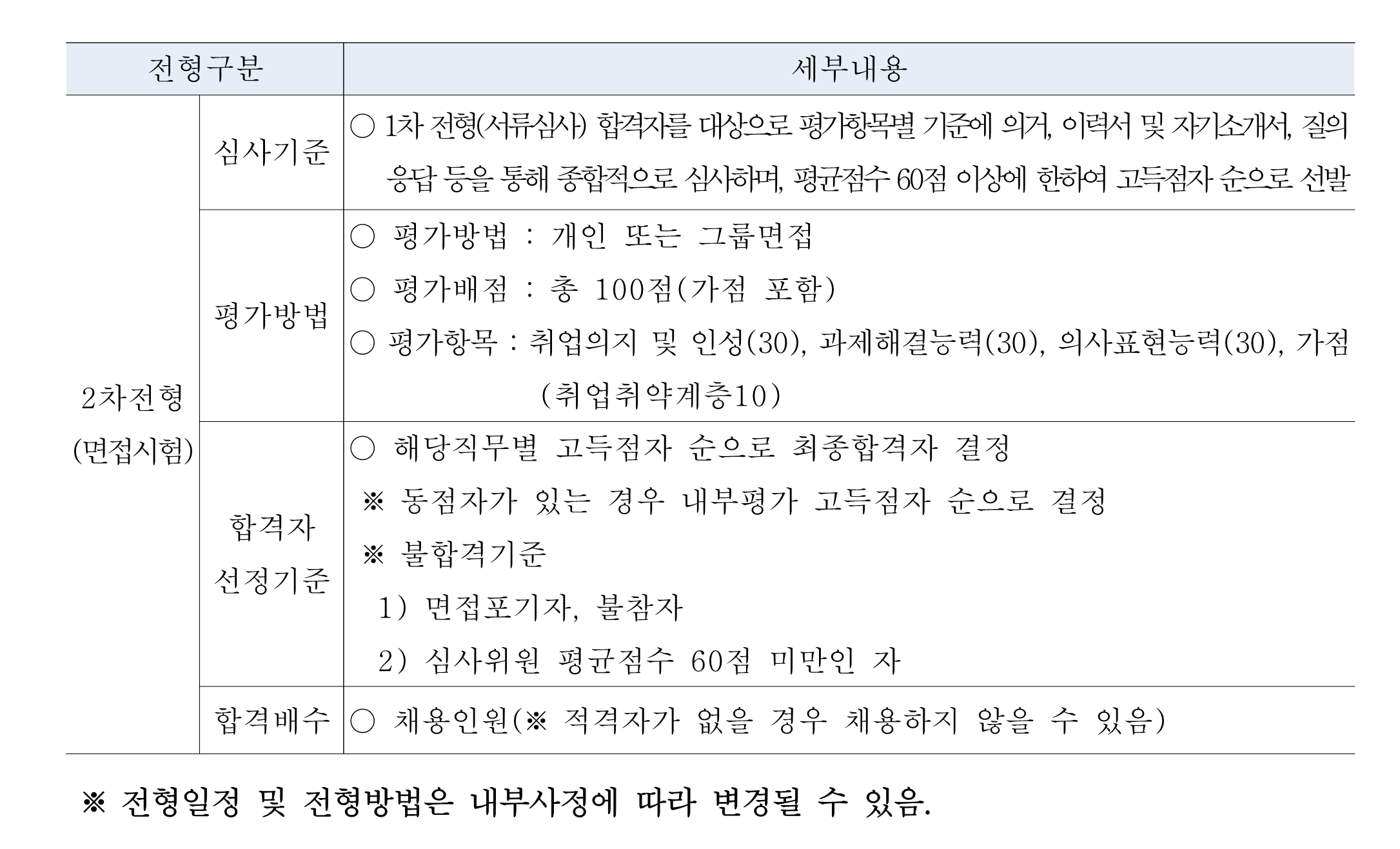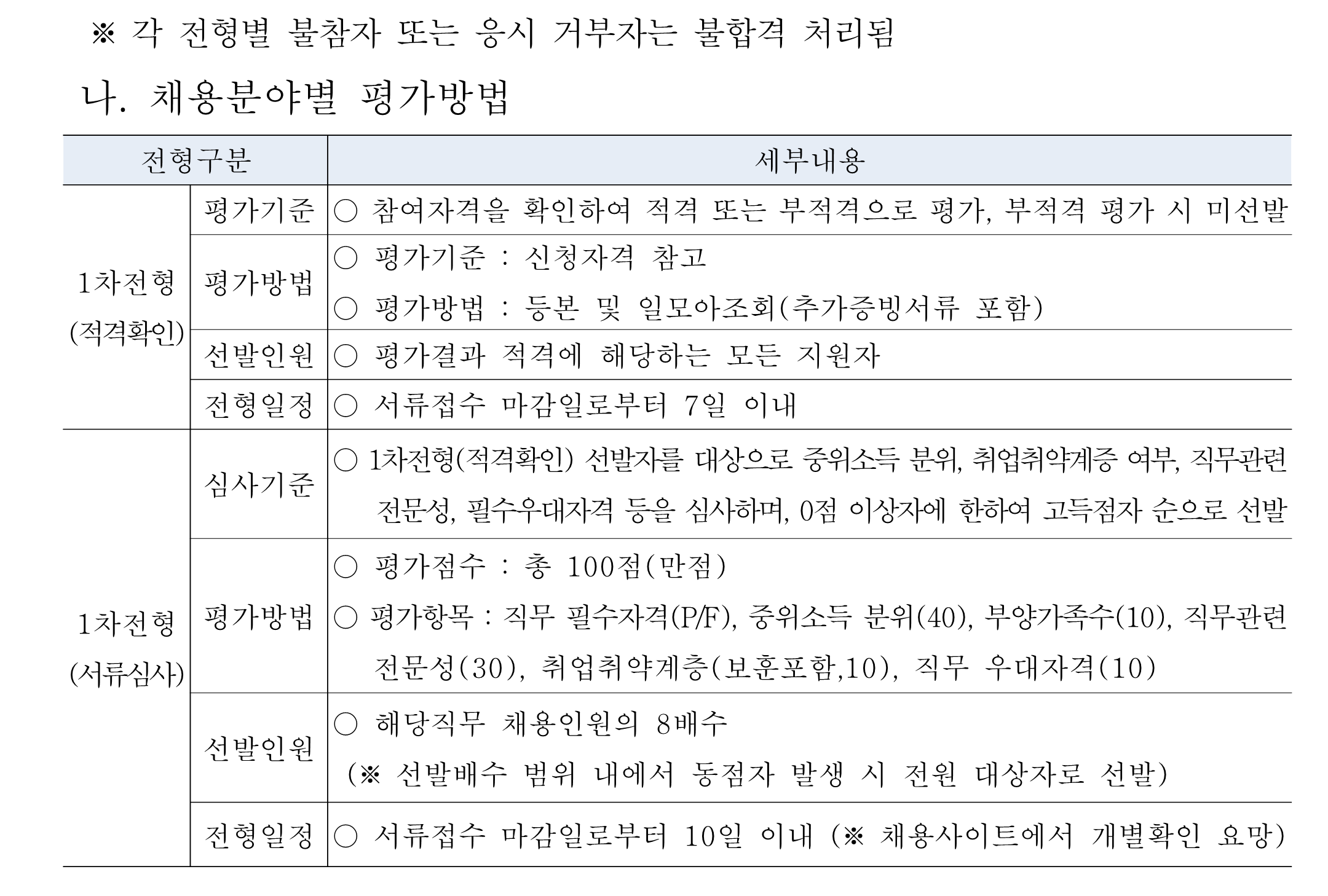 - 각 사업장에 따라 채용불가 기준은 상이할 수 있으며, 해당 사업장 채용기준에 적합하지 않을 경우 채용이 취소될 수 있습니다.