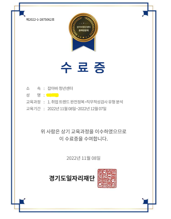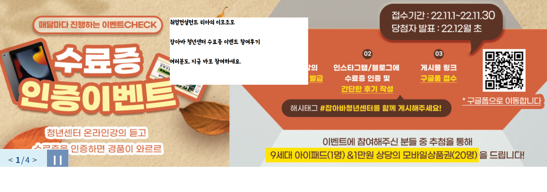 일자리재단 잡아바에서 매월 시행하는 수료증 이벤트 후기