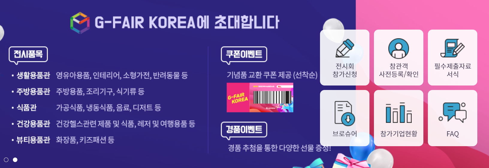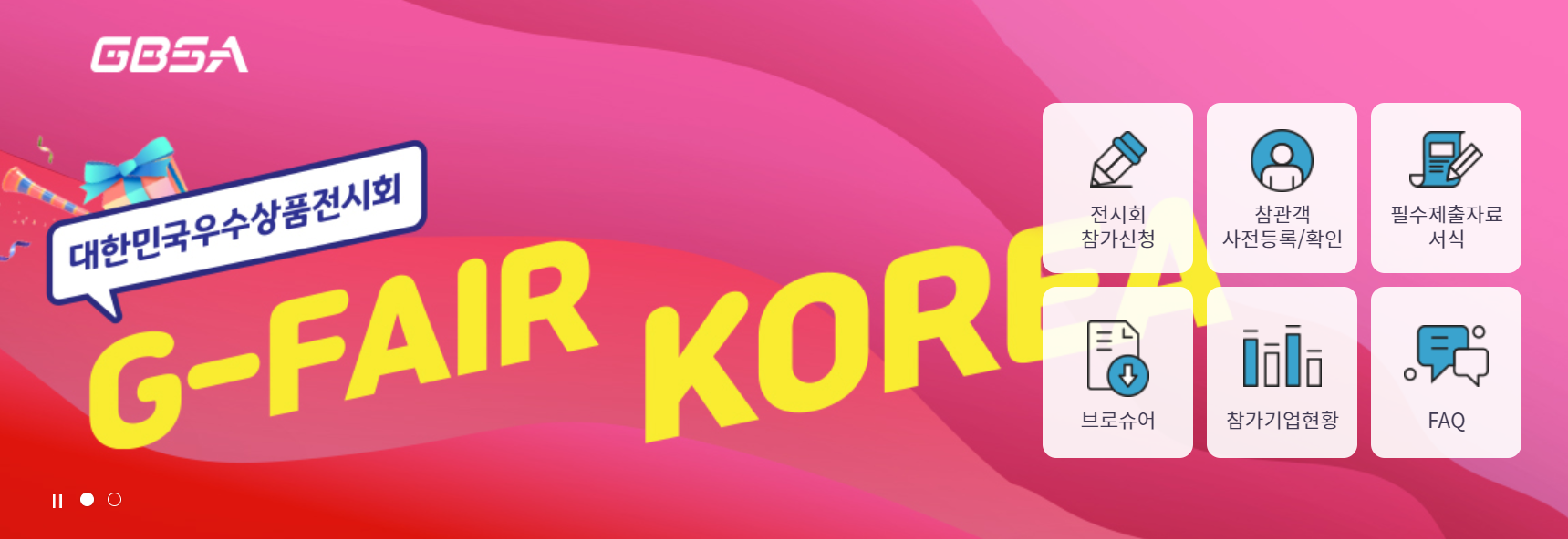 - 신청방법 : 홈페이지(www.gfair.or.k)에서 회원사 가입 및 온라인 참가신청 후 참가비를 납부하여야 합니다.