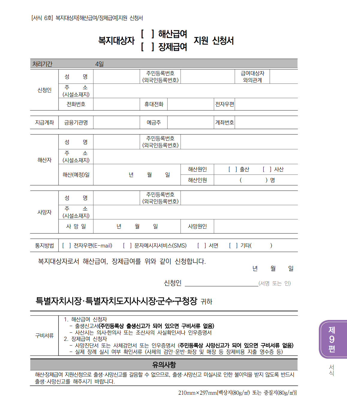 2. 장제급여를 신청할 시 해산자란은 비워두셔도 됩니다.
